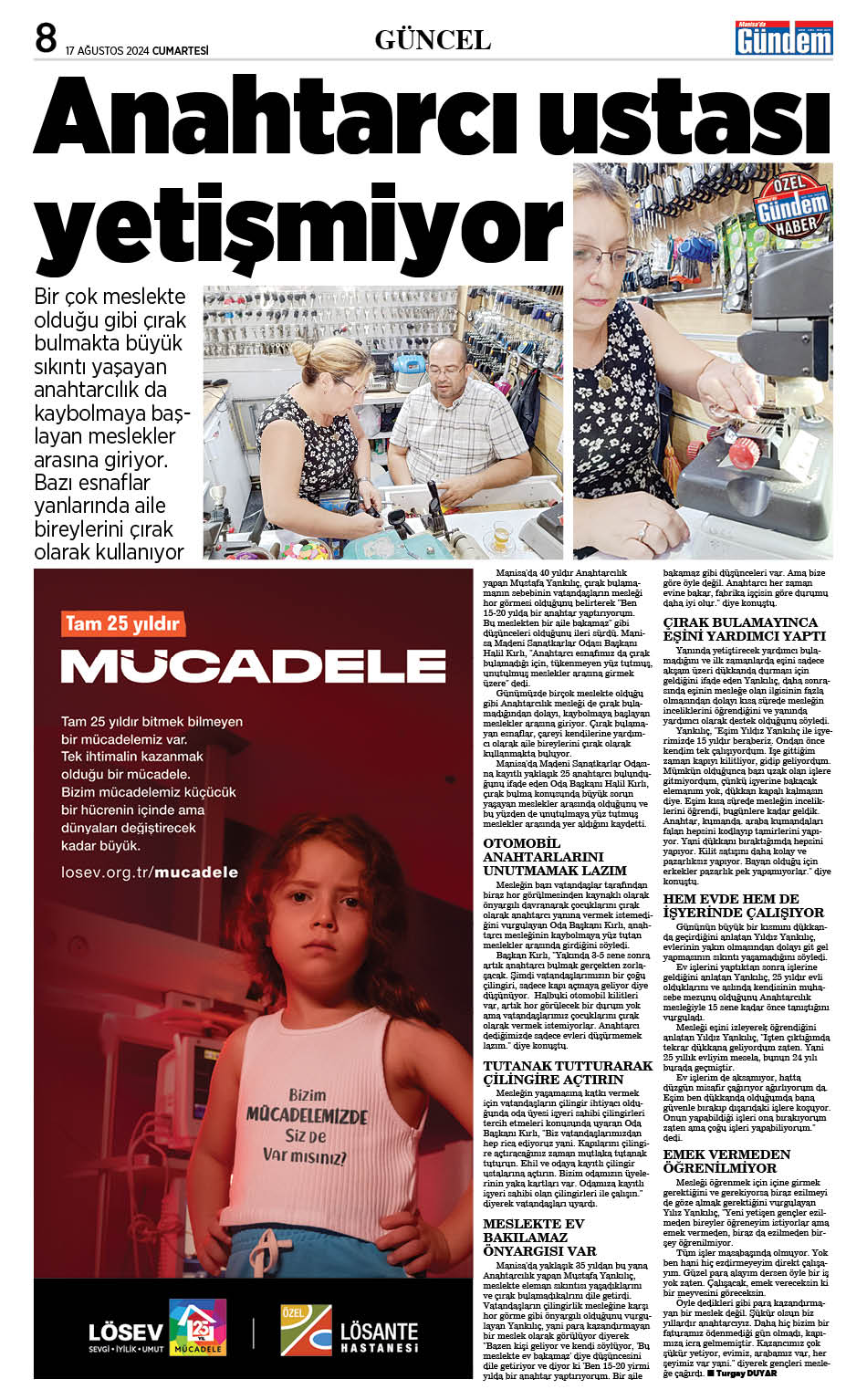 ANAHTARCI USTA YETİŞMİYOR